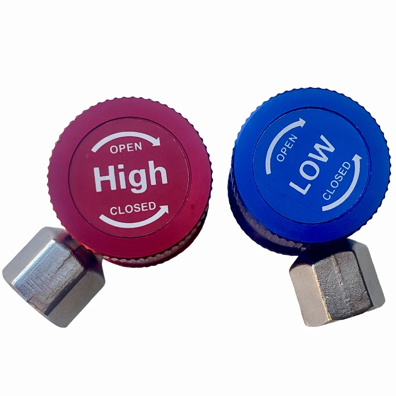 NOTA: Uso exclusivo con R-1234yf (A2L). No mezclar refrigerantes. Apretado manual; no usar herramientas en el collarín.